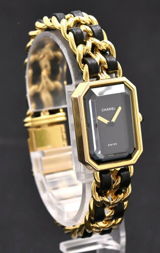 【ウォッチ】CHANEL シャネル プルミエール Lサイズ ブラック文字盤 ゴールドメッキ レディース QZ クォーツ 腕時計 H0001 【中古】【k】