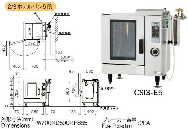 業務用 コメットカトウ スチームコンベクションオーブン CSI3-Eシリーズ(電気式/インジェクションモデル) 700×590×865 CSI3-E5 【 メーカー直送/後払い決済不可 】【 小型 多機能 コンパクト 蒸気 スチーム 栄養 】